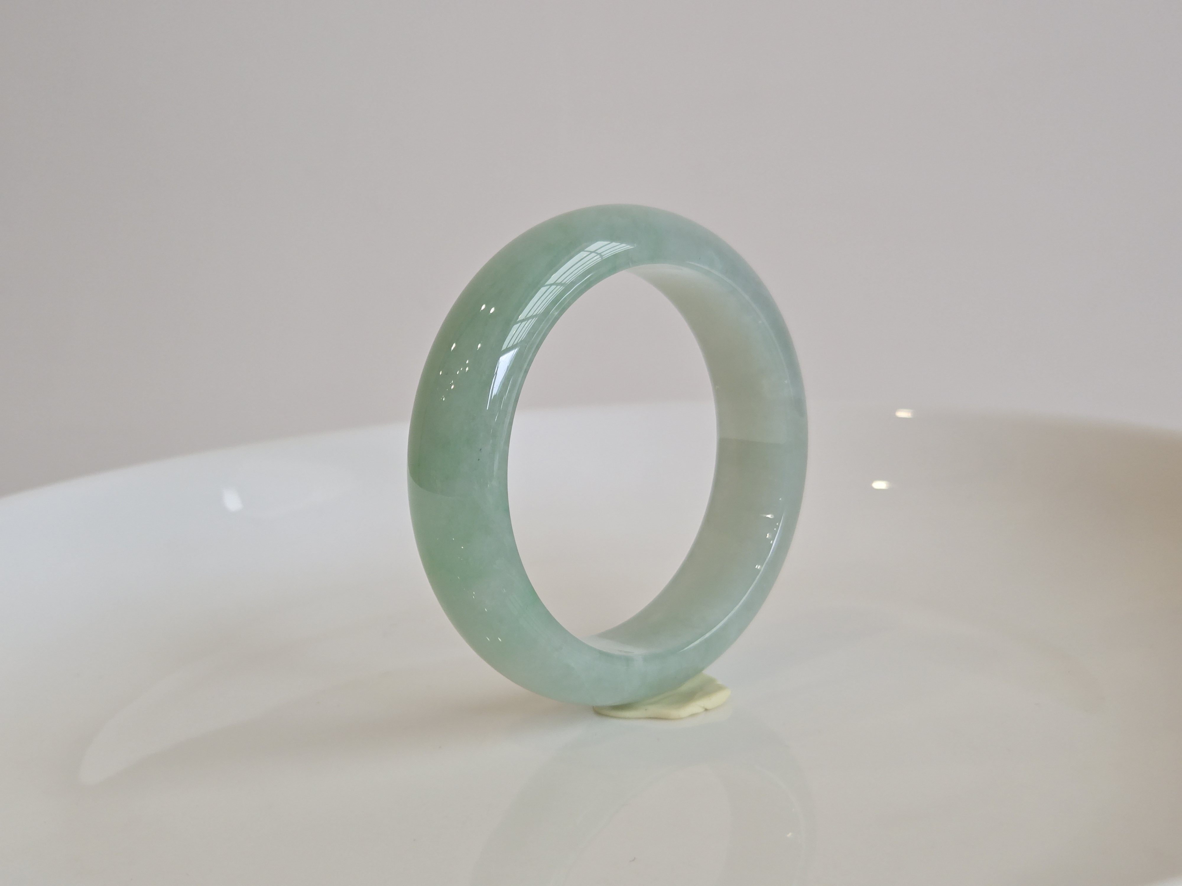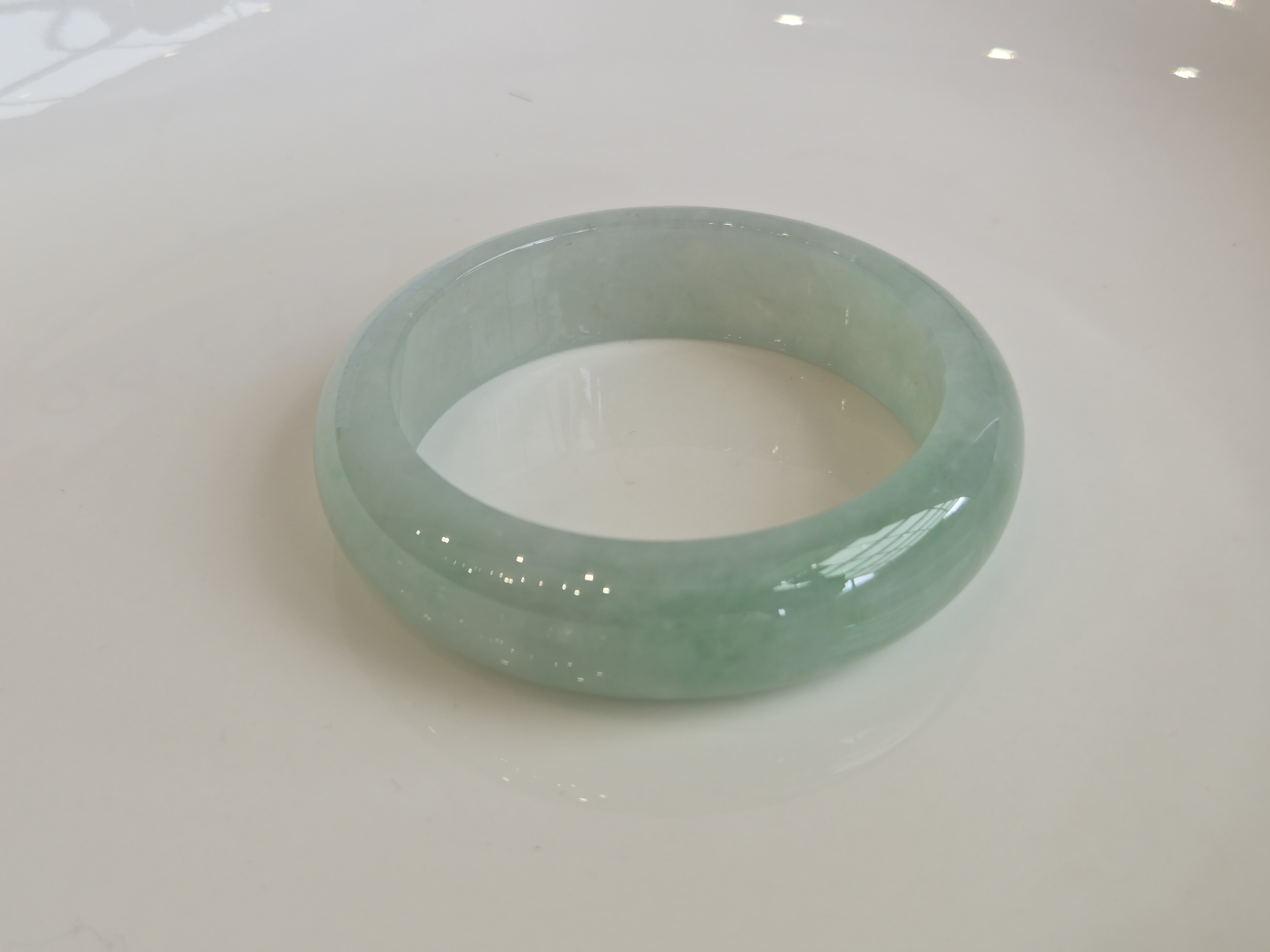膠潤淡果綠寬版翡翠玉鐲57#16.8*8.9